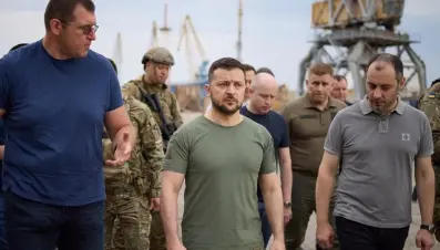 زيلينسكي يجري زيارةً إلى منياء أوديسا مع بدء تحميل الحبوب لتصديرها