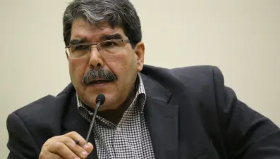 صالح مسلم إذ يعلن انتصار نظام الأسد على تركيا