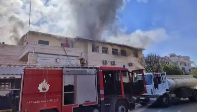 اندلاع حريق ضخم في مبنى الهلال الأحمر بحماة