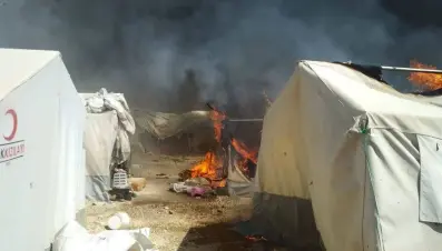 رغم العواصف المطرية... حريق يلتهم خيمة لنازحين بريف إدلب ويجعلهم دون مأوى