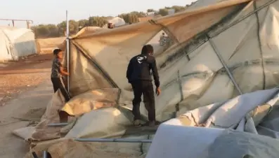 عاصفة هوائية تقتلع خياماً للنازحين بريف إدلب