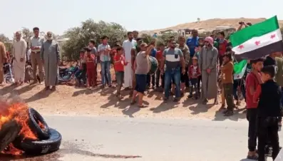 مظاهرات شعبية أمام النقاط التركية تنديداً بقصف جبل الزاوية