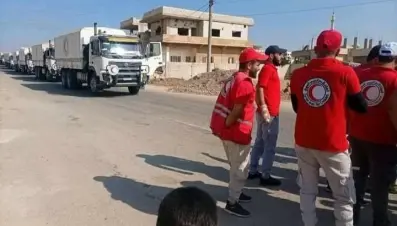 قوافل مساعدات تدخل درعا البلد المحاصرة