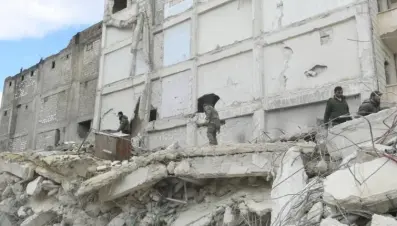 عصابات النظام تعفش أنقاض المباني التي ضربها الزلزال في حلب واللاذقية