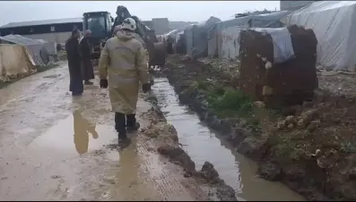 تضرر 100 خيمة للمهجرين شمالي سوريا بفعل السيول