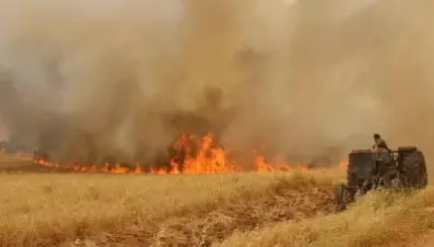 جراء خلاف عشائري...حرائق تلتهم بيارد القمح شرقي ديرالزور