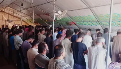وقفة احتجاجية بإحدى مخيمات إدلب تنديداً بالقصف الروسي