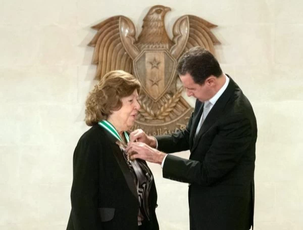 بيدين ترتجفان تمسكان ورقة بيضاء، قرأت نجاح العطار كلمات شكرها لرئيسها بشار الأسد، واصفةً إياه بـ"الحازم والمتواضع وبأنّه يملك ما يكفي لتحقيق ما يصبو إليه السوريون"، بعد أن منحها وسام "أُميّة الوطني ذات الرصيعة" في حفل كبير حظي بتغطية إعلامية واسعة.