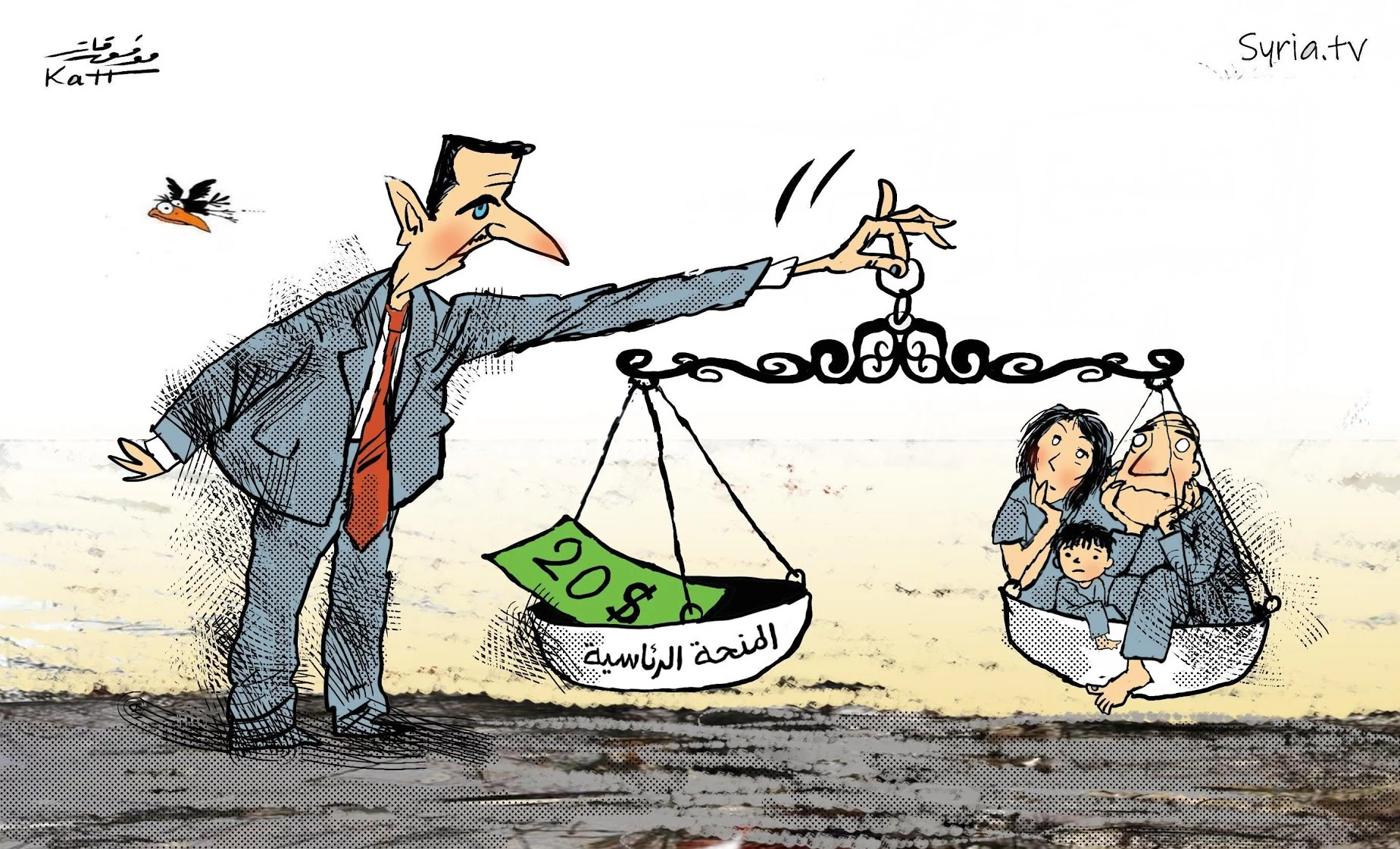 ذات المديح من قبل إعلام النظام، وذات الانتقادات من معارضيه تتكرر عند كل منحة يقرر الرئيس أن يصرفها لمواطنيه، غير أن السجالات حول المبلغ الضئيل، ومحاولة استرضاء المواطنين، أو حتى السخرية من كرم الرئيس ومن فكرة صرف المنحة وكأنها من جيبه الخاص، كل ذلك يبدو أبعد ما يكون عن جوهر المشكلة.