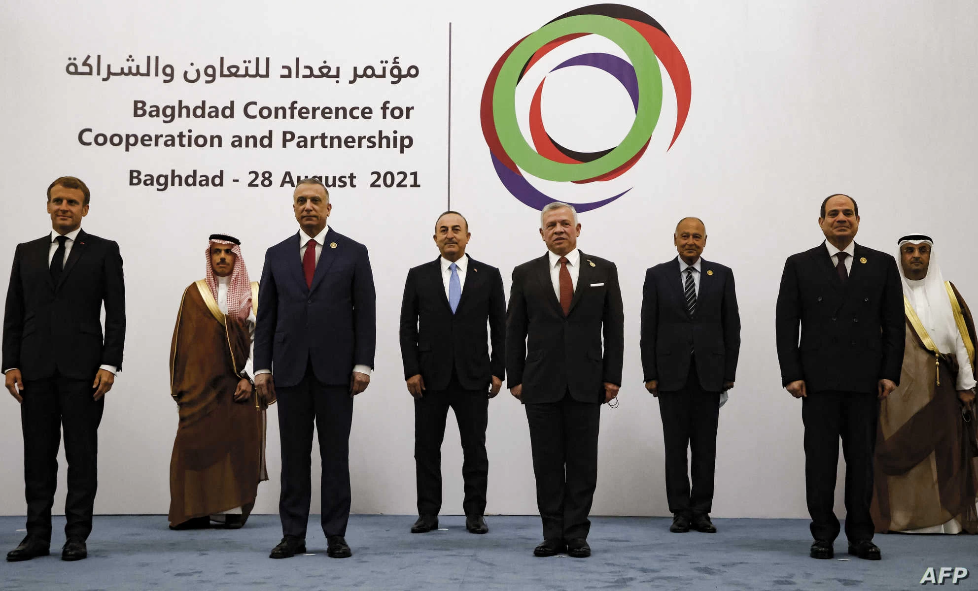 ويعقد مؤتمر “بغداد 2” في مركز الملك حسين بن طلال للمؤتمرات على ساحل البحر الميت، بعد دورة أولى أقيمت في العاصمة العراقية في آب 2021 بمبادرة من الرئيس الفرنسي إيمانويل ماكرون والعراق.