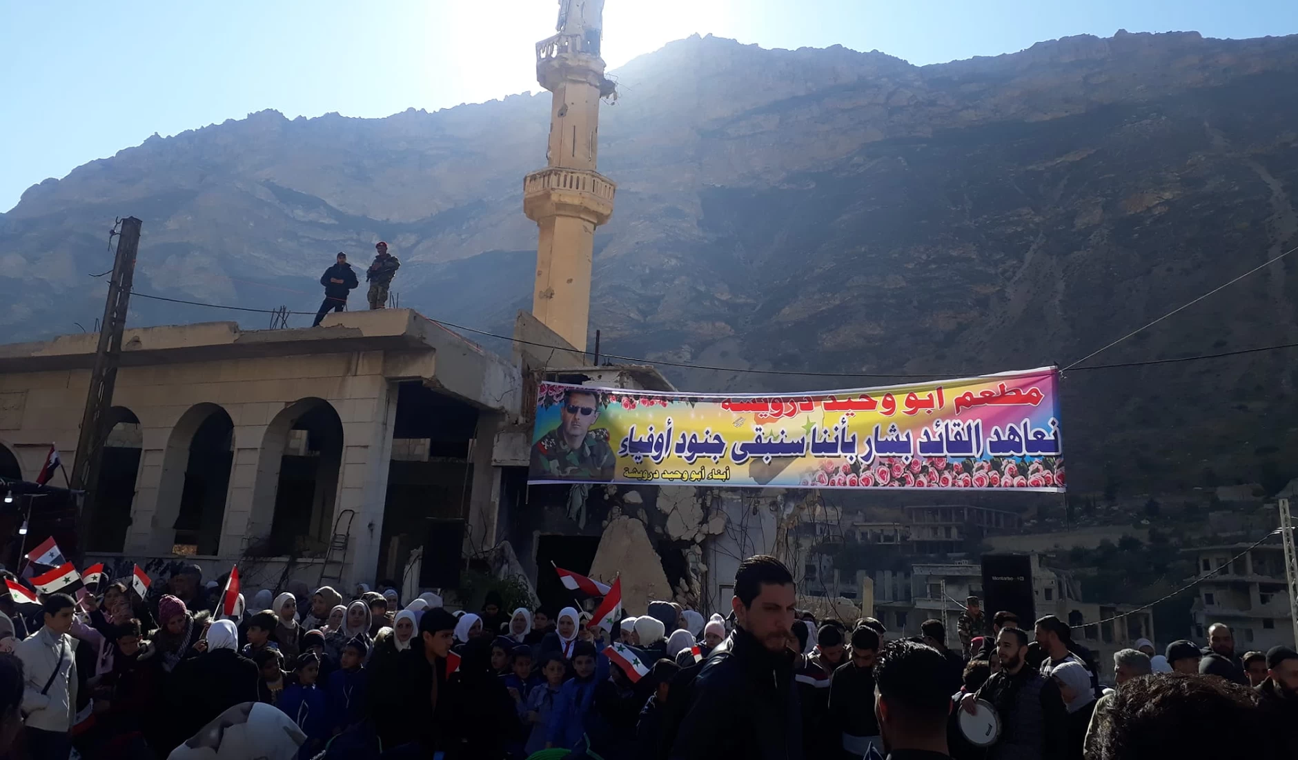 وأوضحت المصادر أن مئات الأهالي تجمعوا عند مدخل البلدة أول أمس، بحضور شخصيات أمنية وعسكرية ومدنية تابعة للنظام.
