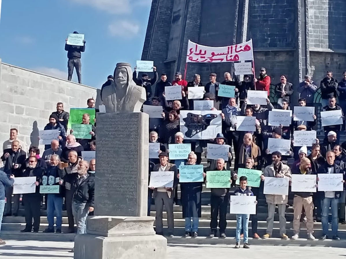 نظم العشرات من أهالي محافظة السويداء جنوبي سوريا، وقفة احتجاجية عند ساحة الكرامة وسط المحافظة، وذلك للأسبوع السابع على التوالي.
