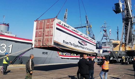 وصلت سفينة مصرية محملة بالمساعدات الإنسانية لمتضرري الزلزال، اليوم الإثنين، إلى ميناء اللاذقية.