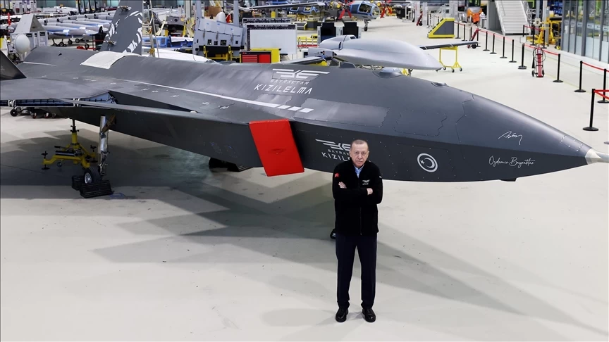 والتقط أردوغان صوراً تذكارية أمام طائرتي بيرقدار قزيل إلما، وبيرقدار تي بي3 المسيرتين.
