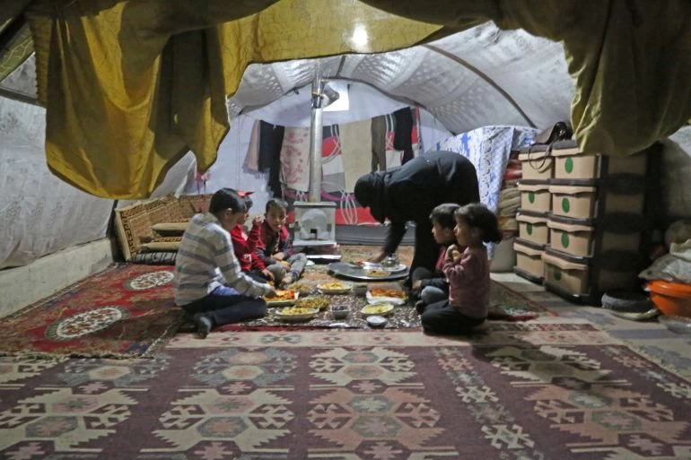 غابت طقوس شهر رمضان في مخيمات النازحين شمال غربي سوريا، جراء ظروف المعيشة الصعبة التي يمر بها السكان، لتقتصر تحضيرات مائدة الإفطار على القليل من الوجبات.