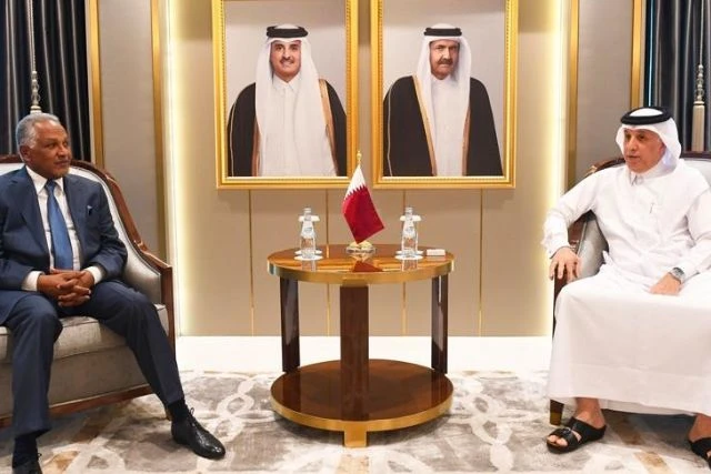 بحث وزير الدولة للشؤون الخارجية القطرية سلطان بن سعد المريخي، مع السفير دفع الله الحاج علي مبعوث رئيس مجلس السيادة السوداني، علاقات التعاون بين البلدين وتطورات الأوضاع في السودان.