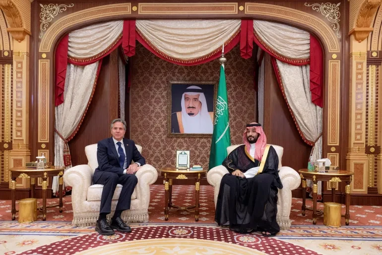 أفادت وكالة الأنباء السعودية بأن ولي العهد الأمير محمد بن سلمان بحث في جدة مع وزير الخارجية الأمريكي أنتوني بلينكن أوجه التعاون في مختلف المجالات، إلى جانب استعراض تطورات الأوضاع الإقليمية والدولية.