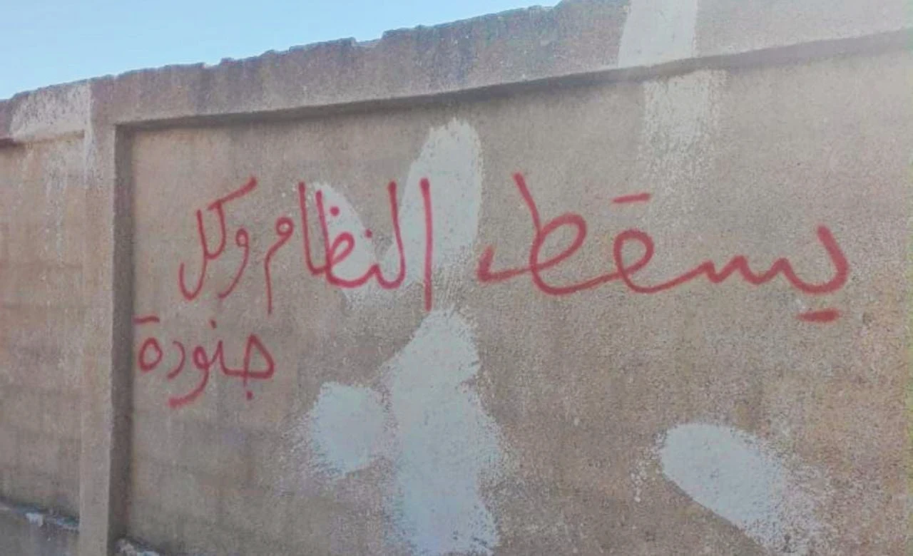 وقالت المصادر لـ"الطريق"، إن مجهولين خطوا عبارات على جدران البلدة مناهضة لمخابرات النظام وتطالب بالمعتقلين.