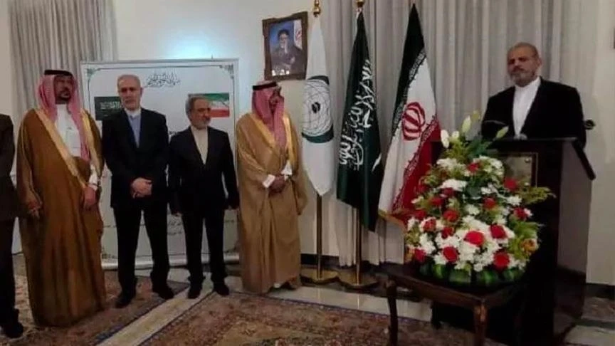وأعلنت السعودية وإيران في 10 آذار / مارس الماضي اتفاق لاستئناف علاقاتهما الدبلوماسية وإعادة فتح السفارات في غضون شهرين، وذلك عقب مباحثات برعاية صينية في بكين، بحسب بيان مشترك للبلدان الثلاثة.