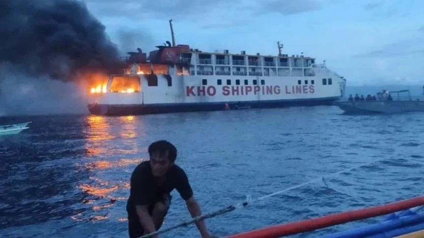 وقال خفر السواحل الفلبيني في بيان، إن العبارة "إسبيرانزا ستار" اندلعت فيها النيران أثناء ابحارها صباح اليوم.