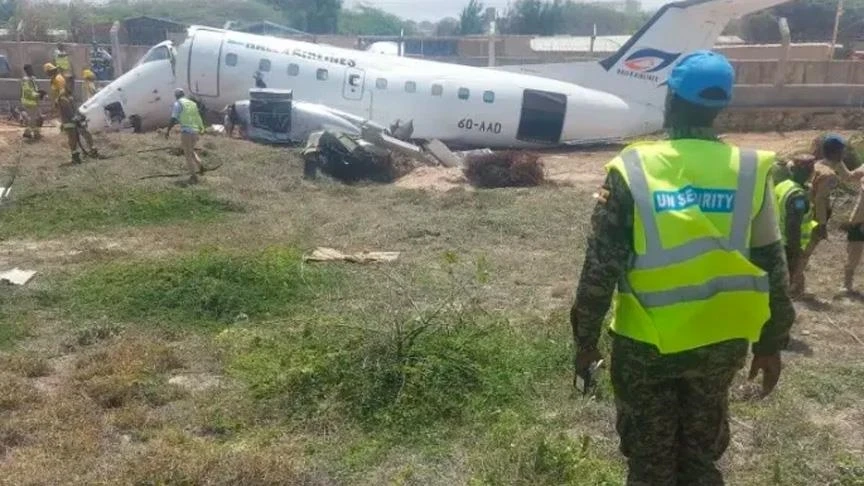 أعلنت وزارة النقل والمواصلات الصومالية إصابة شخص، جراء تحطم أجزاء من طائرة تقل 50 راكباً لدى هبوطها في مطار مقديشو.
