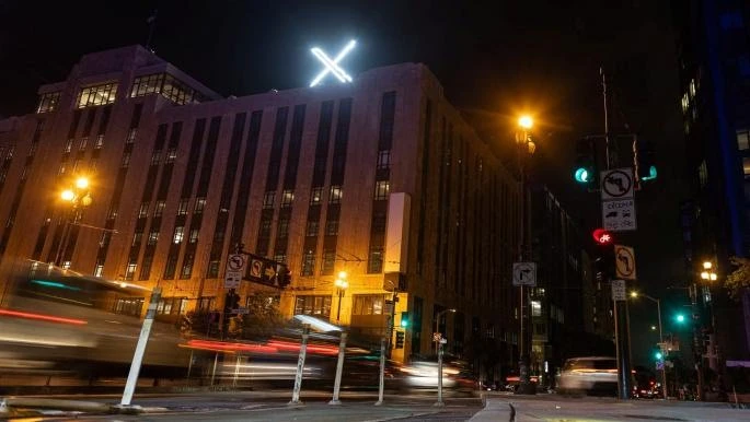 أُزيل شعار "إكس" المضيء العملاق من أعلى برج شاهق في سان فرانسيسكو، حيث يوجد المقر الرئيسي لشركة إكس لتطبيقات التراسل، المملوكة للملياردير إيلون ماسك، والمعروفة سابقاً باسم "تويتر".