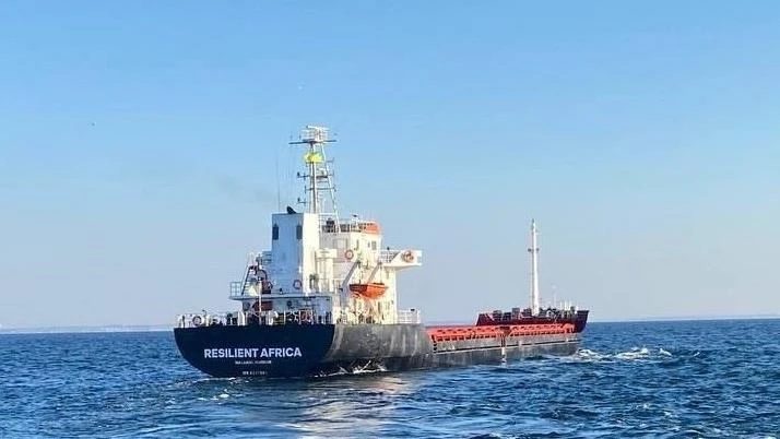 رست سفينة البضائع "ريزيليانت أفريكا" (Resilient Africa) التي تحمل حبوباً أوكرانية، قبالة مضيق البوسفور في إسطنبول.
