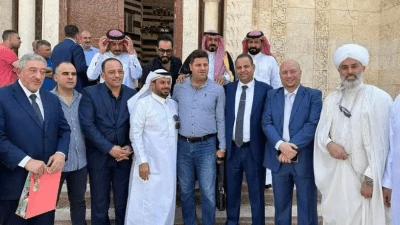 وضمّت البعثة الدبلوماسية: "القنصل إحسان رمان، عامر الطيان، حسين عبد العزيز، راكان داوود"، وكان في استقبالهم: وليد السعد الشمري، طارق الشمري، ثامر الشمري من أبناء الجالية السورية في السعودية.
