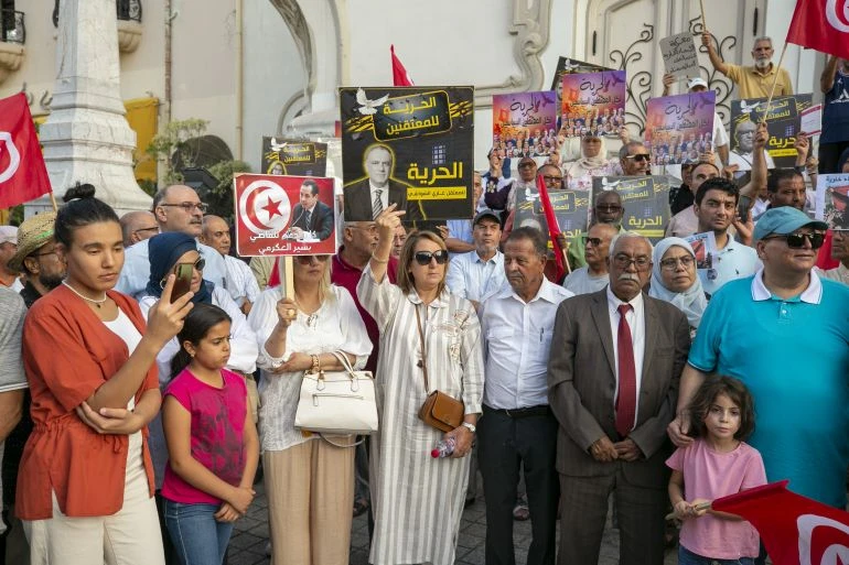 بدأت شخصيات سياسية وحزبية تونسية إضرابا عن الطعام "مساندة للمساجين السياسيين" الذين بدؤوا إضرابا قبل أيام، بينما أصدر قاضٍ تونسي قرارا بسجن عبير موسي المعارضة البارزة للرئيس قيس سعيّد، بعد يومين من اعتقالها قرب مدخل القصر الرئاسي.