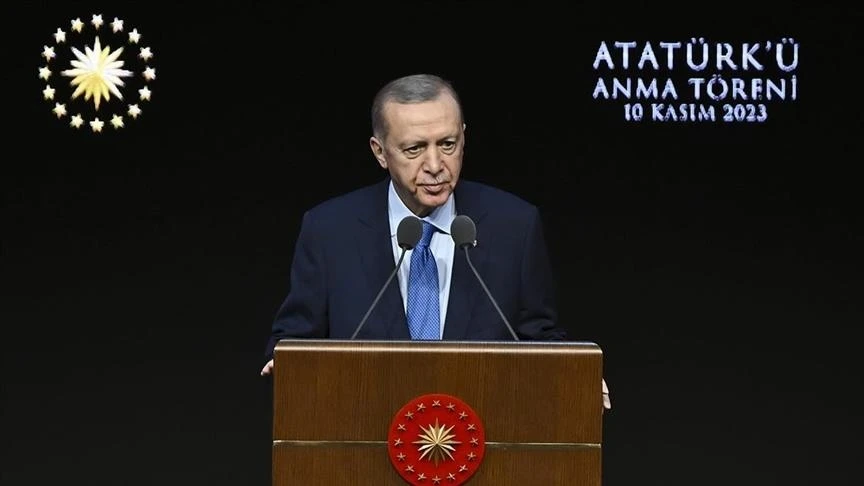 وذكر أردوغان في كلمة ببرنامج بمركز المؤتمرات في المجمع الرئاسي، لإحياء الذكرى 85 لوفاة مؤسس الجمهورية مصطفى كمال أتاتورك: "كارثة وفاجعة وجريمة ضد الإنسانية ترتكب في غزة أمام أعين العالم بأسره".