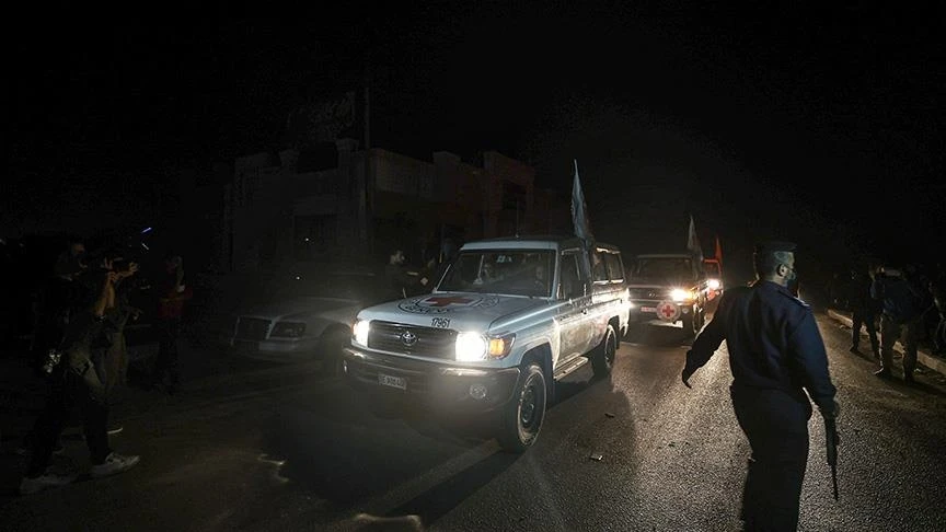 وقال المصدر الأمني - رفض الكشف عن اسمّه - إن "الأسرى الإسرائيليين الذين أفرجت عنهم حماس اليوم (الجمعة) في أيد إسرائيلية وهم في طريقهم إلى معبر كرم أبو سالم".