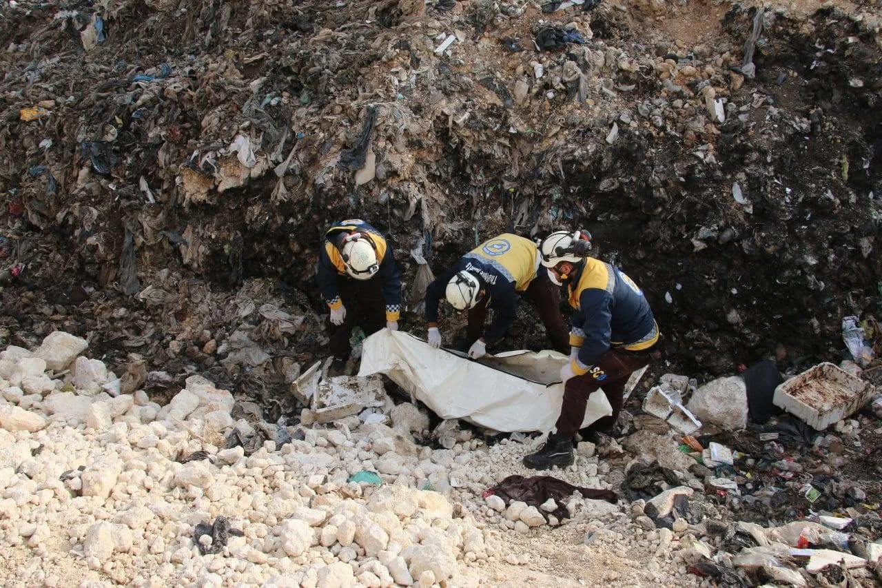 تلقت الجهات الأمنية وفرق الدفاع المدني إخطاراً من الأهالي بالعثور على جثة محروقة تعود لسيدة بين أكوام القمامة في أحد المكبات على طريق إدلب باب الهوى شمالي المحافظة.