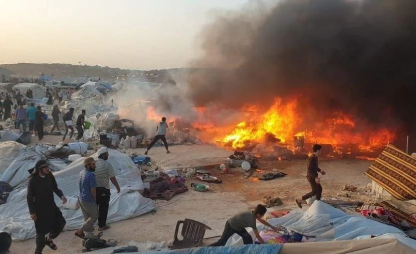 فارق طفل رضيع الحياة في إحدى مخيمات ريف إدلب الشمالي، جراء اندلاع حريق داخل الخيمة التي يقيم بها نتيجة سقوط المدفأة.