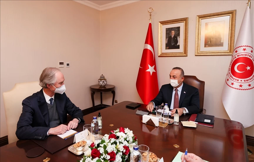 اجتمع وزير الخارجية التركي مولود تشاووش أوغلو، بمبعوث الأمم المتحدة إلى سوريا غير بيدرسون، وبحث معه تطورات عمل اللجنة الدستورية.