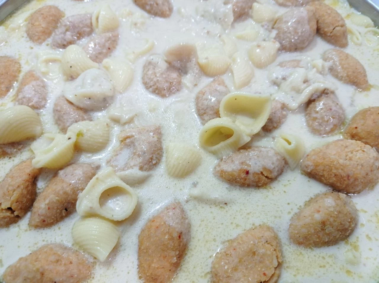 وتضيف، "أما الشيش برك فقد أزلته مع مكوناته بشكل كلي من المائدة وصنعت المعكرونة المطهوة باللبن عوضاً عنه، فعندما تصنع الكبة اللبنية المقلية يجب أن تتواجد أكلة مصنوعة من اللبن إلى جانبها وتسكبها في قدر متوسط الحجم كي تتشارك الكبة حصتها منه وتتشرب في اللبن الدسم".