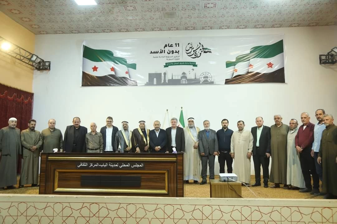 كذلك التقى وفد الائتلاف بالمجلس المحلي في الباب ووجهاء المدينة، وأكد على ضرورة تمثيل المدينة ومجلسها في الائتلاف كونه المظلة الجامعة للثورة.