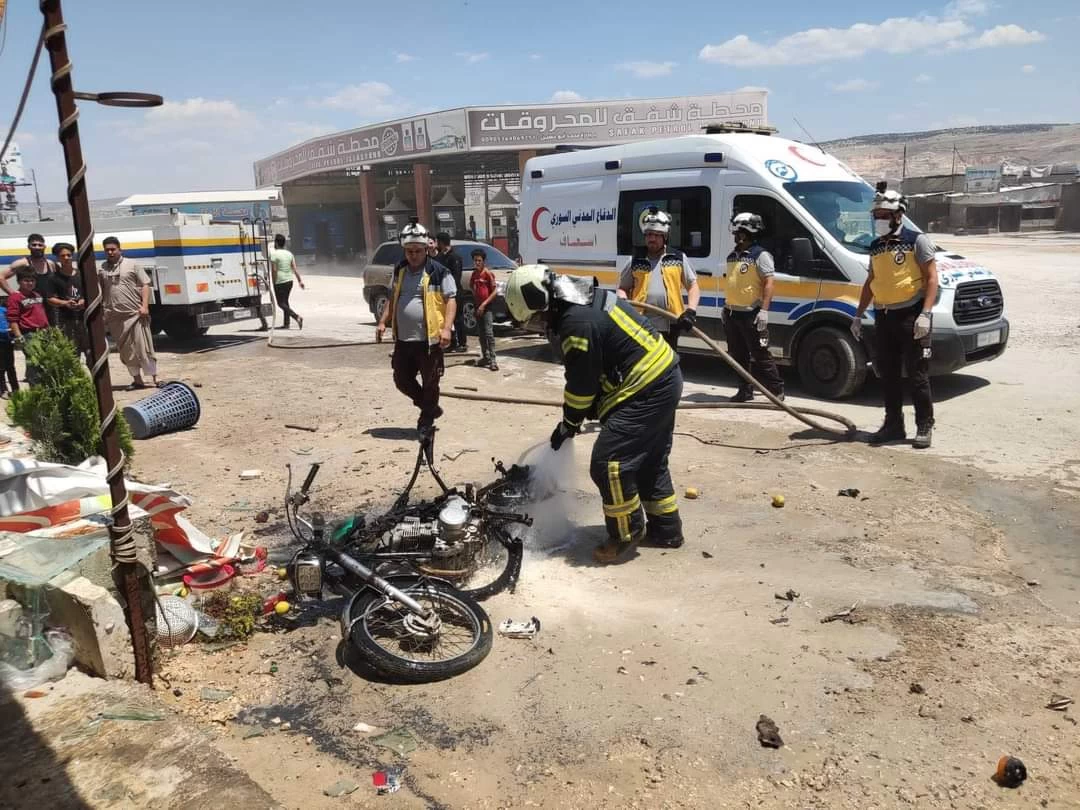 على حين قامت فرق الدفاع المدني بإسعاف المصابين إلى مشفى المدينة، وأمنت مكان الانفجار، وأزالت آثاره لحماية المدنيين.
