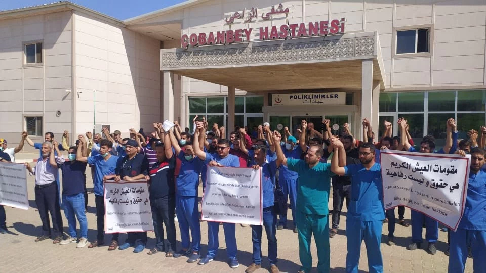 كما خرجت الكوادر الطبية في منطقتي عفرين والراعي، بوقفة احتجاجية مماثلة أمام مشفى عفرين والراعي، طالبوا فيها بزيادة أجورهم، ومساواتها بالأجور التي يتقاضاها أفراد الكوادر الطبية التركية.