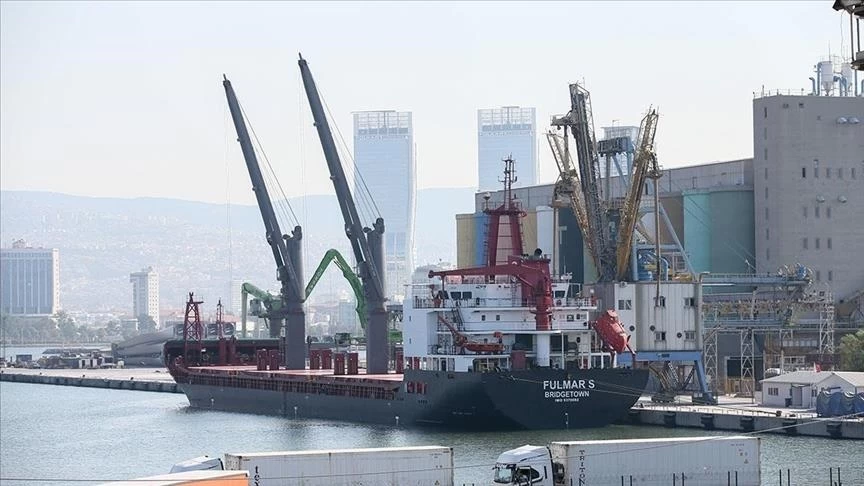 وصلت سفينة محملة بالذرة قادمة من أوكرانيا، إلى ميناء ألصانجاك، بولاية إزمير غربي تركيا.