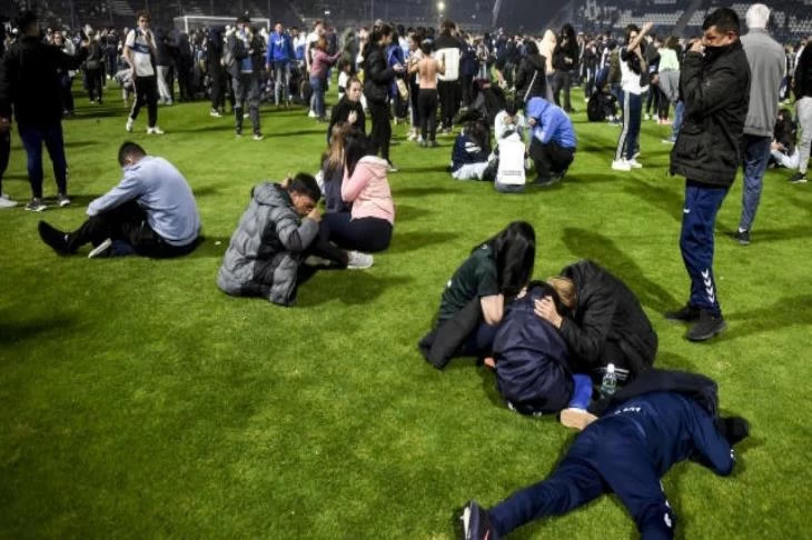 وهرع العديد من المشجعين، بمن فيهم الأطفال رفقة ذويهم، للخروج من المدرجات والنزول إلى أرض الملعب، للتعافي من الغاز المسيل للدموع.