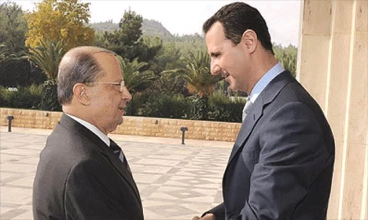 فجأة، كُشف من دون مقدمات، او أي تمهيد او تسريب مسبق، وفي هذه الحشرة، التي كان يرتب فيها عون حقائبه، ان رئيس الجمهورية أجرى اتصالاً بالرئيس السوري بشار الأسد، وناقش معه العلاقات الثنائية وملف ترسيم الحدود البحرية، واتفقا على تشكيل وفود رسمية من الوزارات والإدارات الرسمية في البلدين، لعقد اجتماعات في بيروت ودمشق من أجل التوصل سريعاً إلى اتفاق، وقيل: "أن نقاط النزاع ليست من النوع غير القابل للعلاج، وإن كانت تحتاج إلى نقاش تقني وقانوني".
